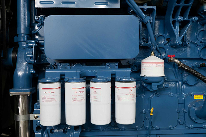В комплектацию входит - подогреватель охлаждающей жидкости SmartGen, фильтр-сепаратор топливный, крышка для слива топлива из бака, батарея Varta +подзарядка аккумуляторной батареи SmartGen, промышленный глушитель + компенсатор. Картер двигателя имеет 2 отверстия для масляного насоса и для установки подогревателя масла. Насос для откачки масла из картера двигателя. Медный радиатор FAST рабочая температура до 50С.